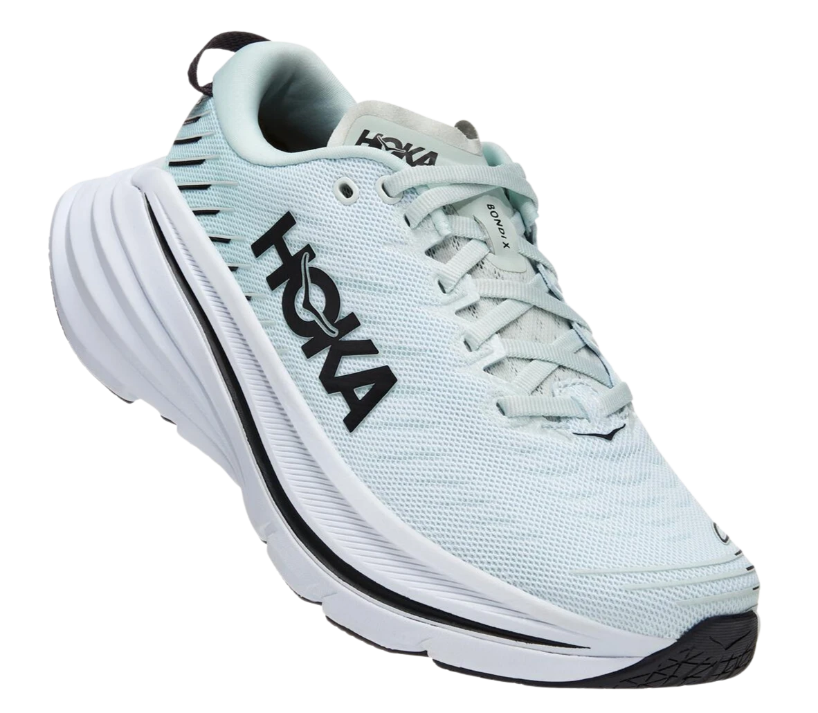 A maximally cushioned road shoe designed to go the distance, the game-changing Bondi X is spring-loaded with our propulsive carbon-fiber plate. The original Bondi cushioning and lines are here, providing the soft, balanced ride the franchise is known for. The Bondi X fine-tunes the geometry with an extended rocker for greater acceleration, while also delivering smoother toe-offs, thanks to the carbon-fiber plate. HOKA’s extended crash pad acts like a veritable marshmallow, employing the softest foam in our arsenal to date. Paired with a progressive upper with embroidered TPU yarn, the Bondi X will get you there, and then some.