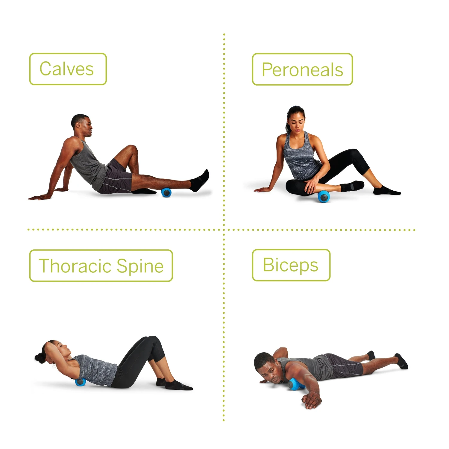 - High and wide ridges stretch the muscles, high and narrow ridges squeeze the muscles as you roll to promote blood circulation to hard-to-reach muscle tissue