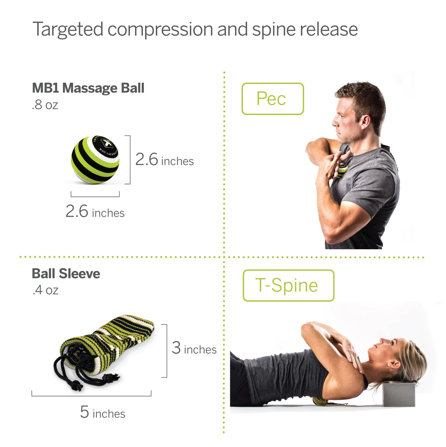 - MB1 Massage Ball: Provides direct deep tissue compression for targeted relief of aches and pains.Â